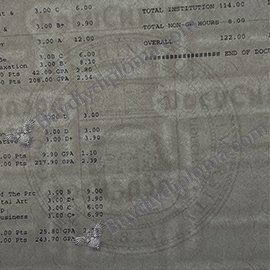 We offer the very best and latest in quality features for our replacement and novelty Novelty diplomas and transcripts. Raised and Embossed seals and emblems, metallic seal features, metallic text, metallic borders, dry stamped emblems, dual colored metallic emblems and more! See below for some recent work.
